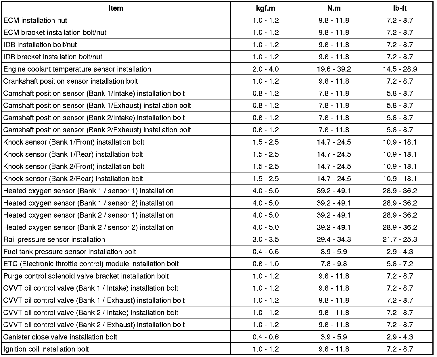 Tightening Torques