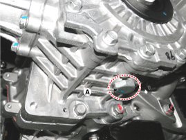 2. Drain the transfer oil after loosening the drain plug (A).