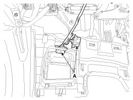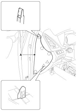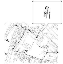 3. After loosening the mounting screws, remove the crash pad lower panel (A).