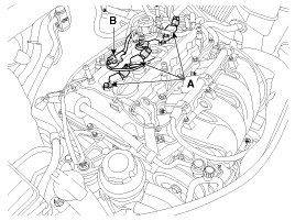 2. Disconnect the injector extension connector (A) and ignition coil connectors (B).