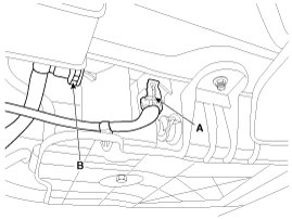 7. Remove the canister bracket (B) installation bolt (A).