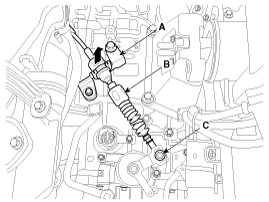 6. Remove the cable (B) from the bracket (A) at transaxle assembly side.