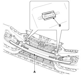 4. Unlock the lock pins (B) by pushing it up with a screwdriver or remover and then remove the radiator grill (A).
