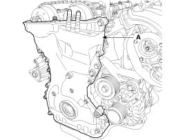 15. Remove the timing chain cover (A) by gently prying the portions between the cylinder head and cylinder block.
