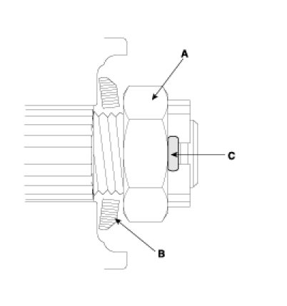 CAUTION: The washer (B) should be assembled with convex surface outward when installing the castle nut (A) and split pin (C).