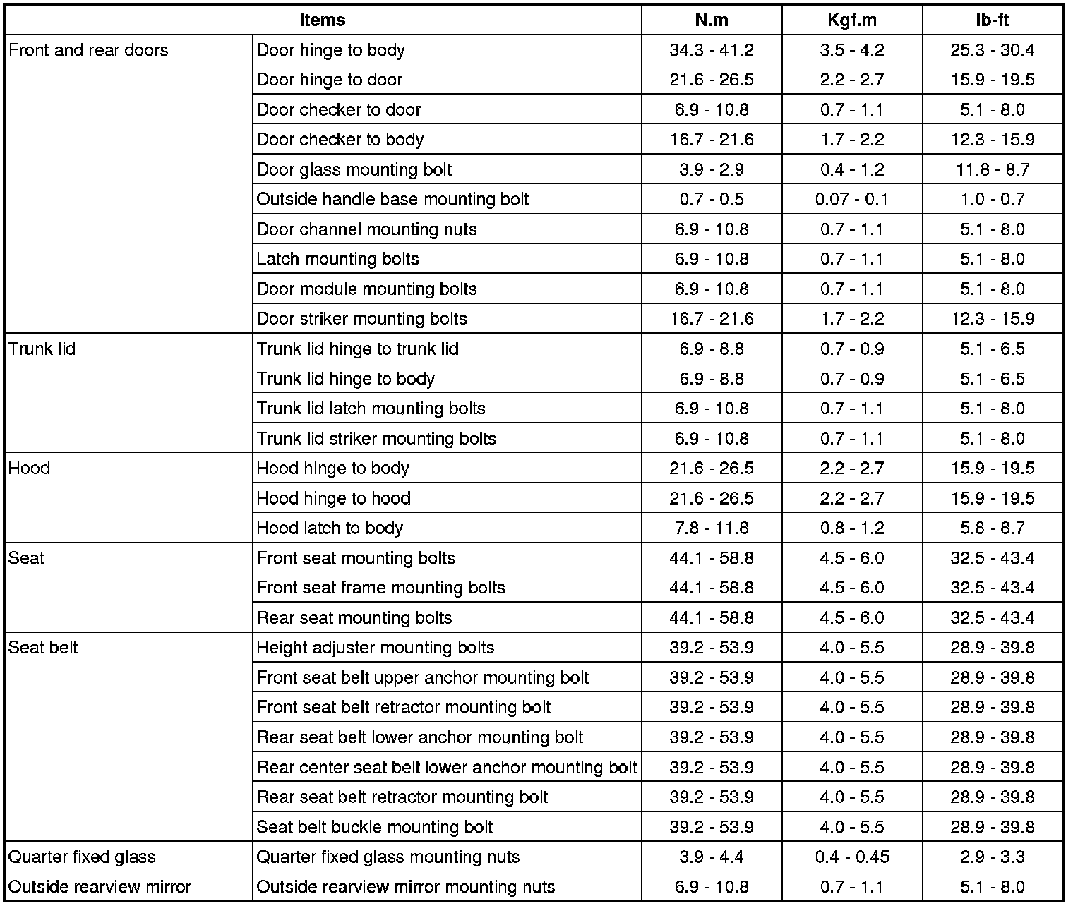 Tightening Torque