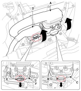 (1) Pull the lever (E), and then pull the connector by rotating the lever (F).