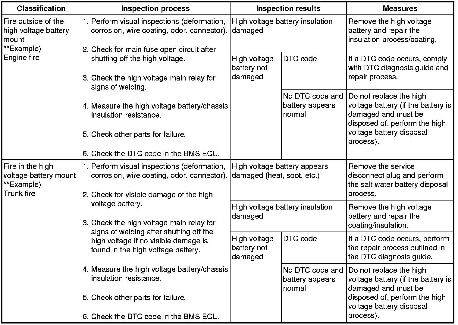 2. Defective high voltage battery system handling / Inspection