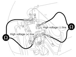(1) Connect the insulation tester (+) terminal to the (-) PRA high voltage power terminal (B).