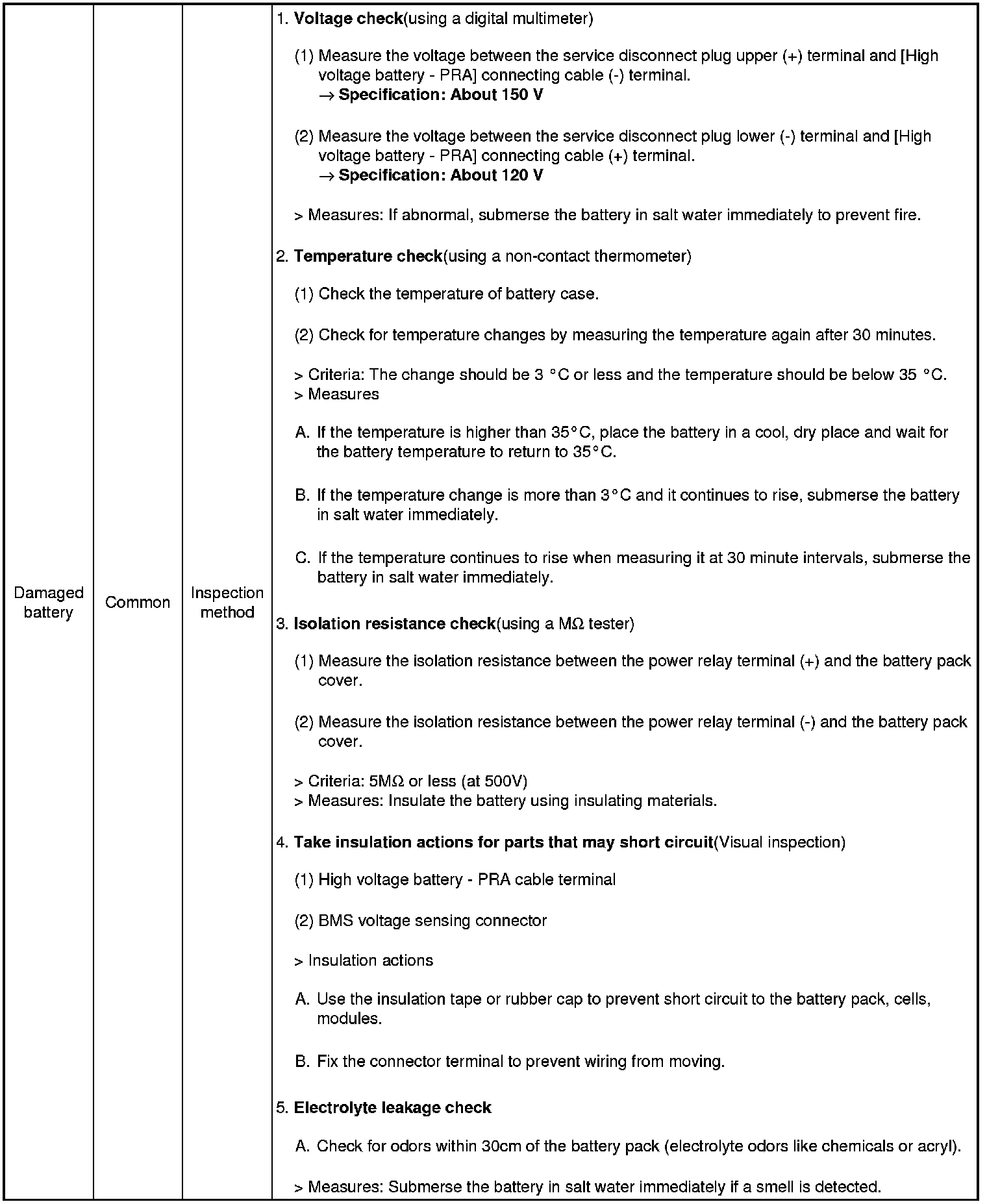 High voltage battery system inspection guide