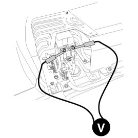 5. Connect the insulation tester (+) terminal to the high voltage battery (+) and (-). Measure the resistance.