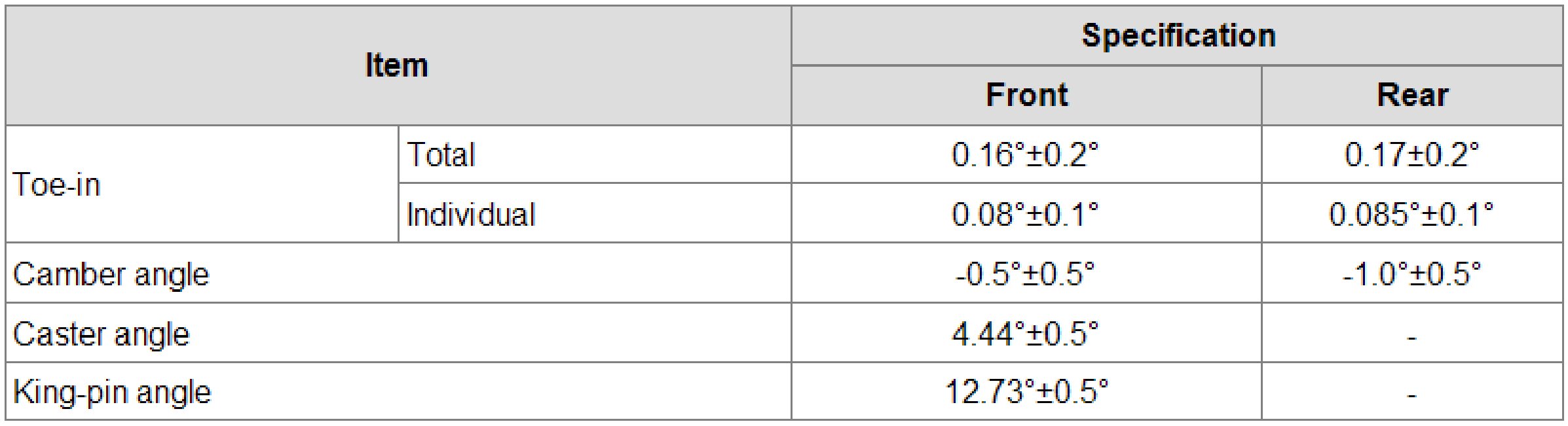 Wheel Alignment Specifications