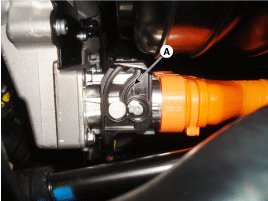 5. Disconnect the HSG (Hybrid starter generator) high voltage power cable connector (A).