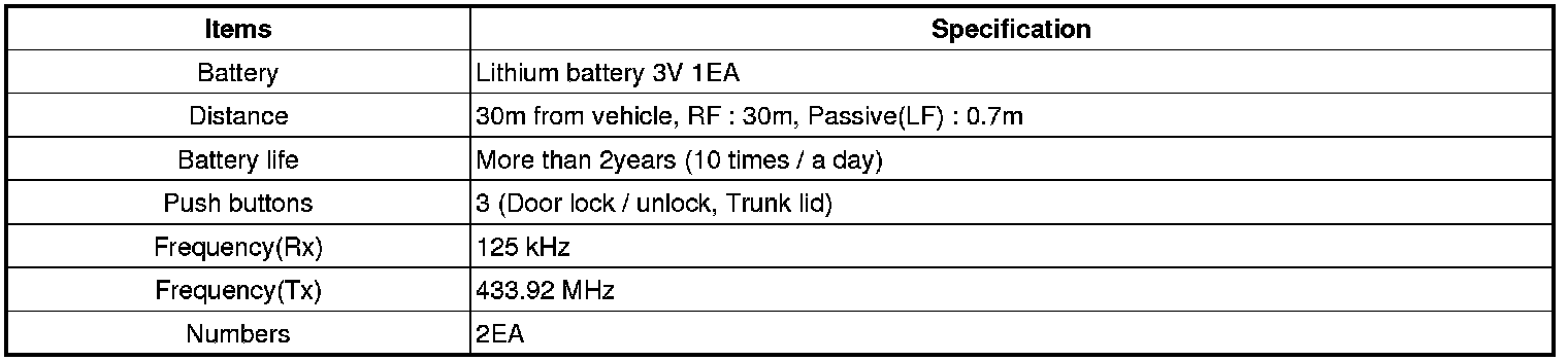 Keyless Starting System: Specifications