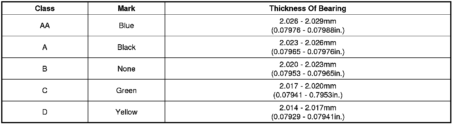 Main Bearing Size Codes