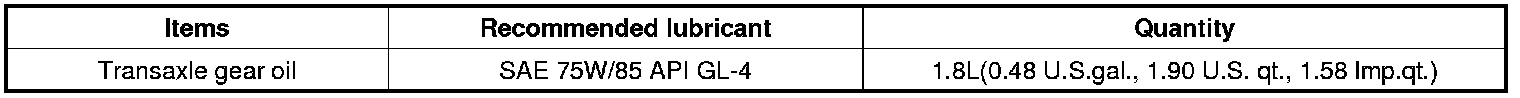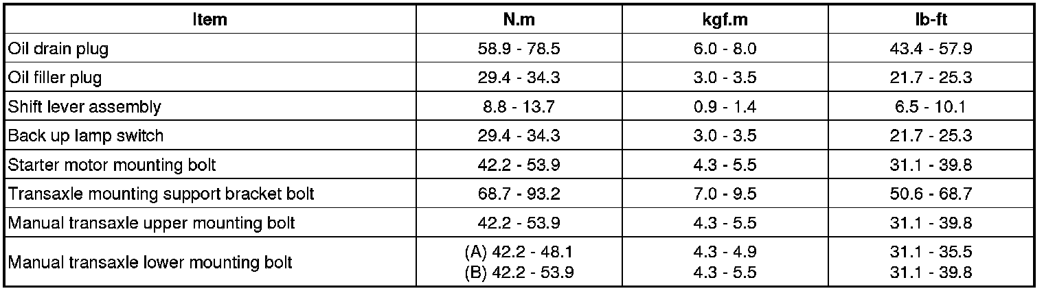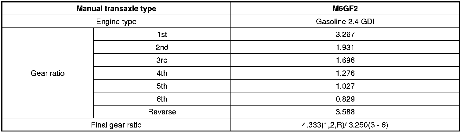 Manual Transmission/Transaxle: Application and ID: Specifications