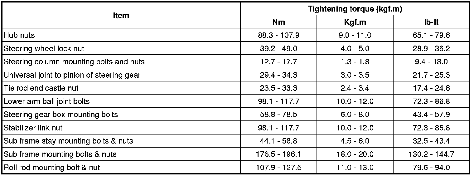 Tightening Torques