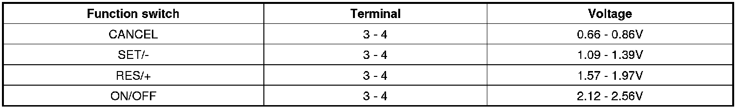 2. Measure resistance between terminals on the control switch when each function switch is ON (switch is depressed).