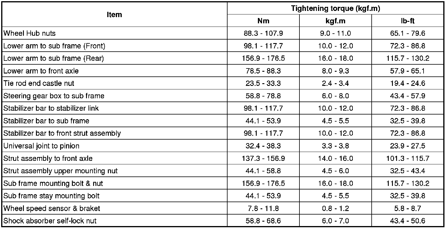Tightening Torques
