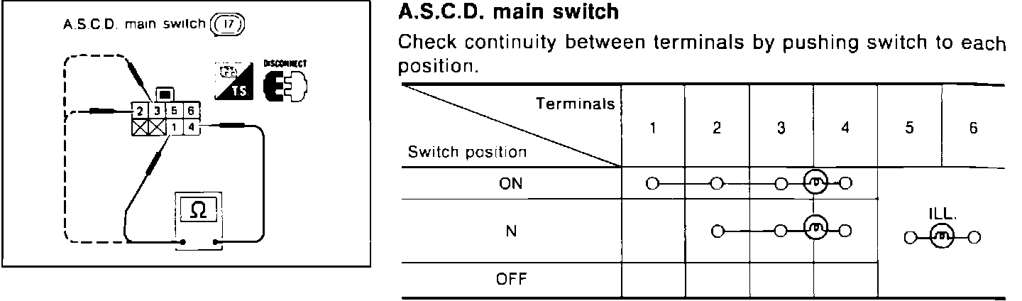 Cruise Control/Locations. When testing A.S.C.D. main switch, refer to