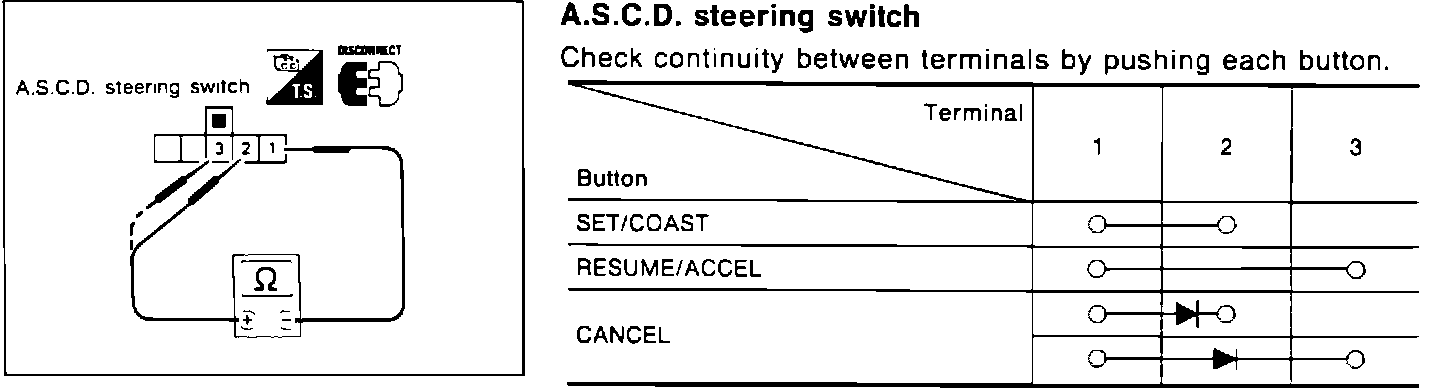 Cruise Control/Locations. When testing A.S.C.D. steering switch, refer to