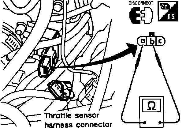 a. Accelerator pedal completely released, resistance should be approximately 2000 ohms.