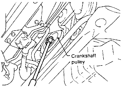 6. Remove crankshaft pulley bolt.