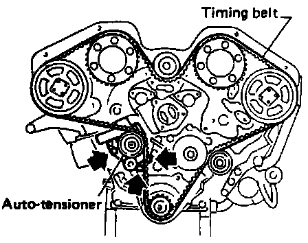 - After removing timing belt, do not turn crankshaft and camshaft separately because valves will strike piston heads.