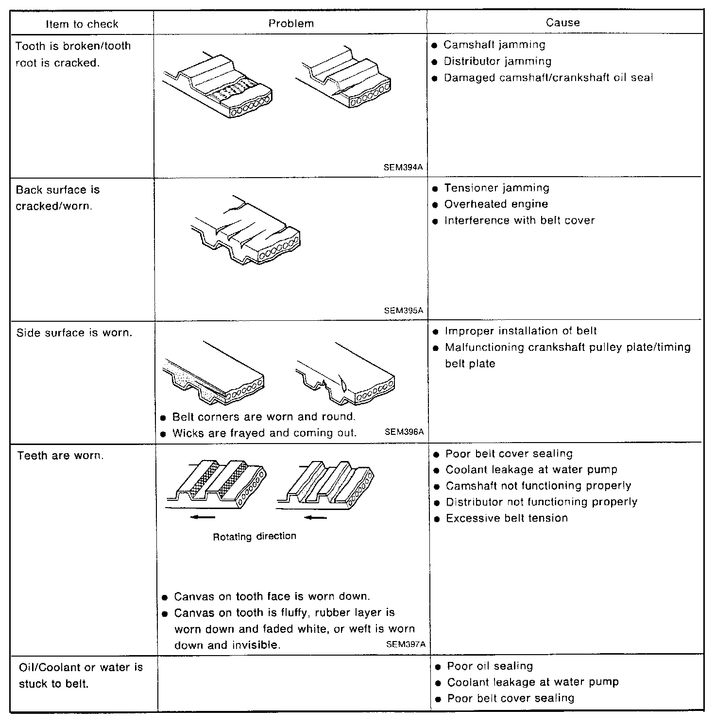 1. Visually check the condition of timing belt. Replace if any abnormality is found.