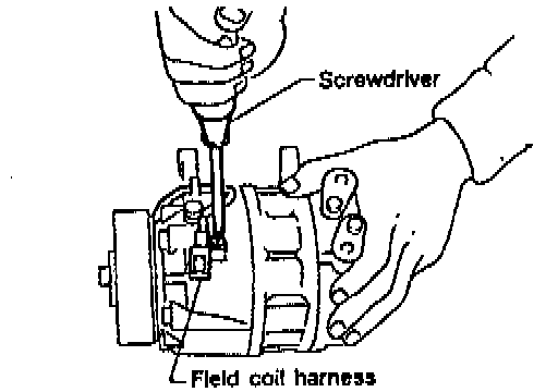 ^ Install the field coil. Be sure to align the coil's pin with the hole in the compressor's front head.