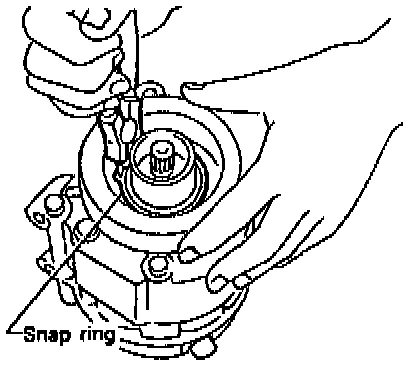 ^ Remove the snap ring using external snap ring pliers.