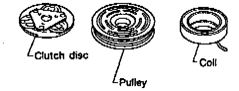 Check the appearance of the pulley assembly. Check the contact surface of the pulley for any sign of excessive grooving due to slippage. If any sign is found, replace both the pulley and clutch disc. The contact surfaces of the pulley assembly should be cleaned with a suitable solvent before reinstallation.