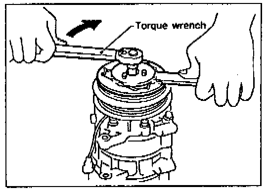 When replacing compressor clutch assembly, always conduct the break-in operation. This is done by engaging and disengaging the clutch about thirty times. Break-in operation raises the level of transmitted torque
