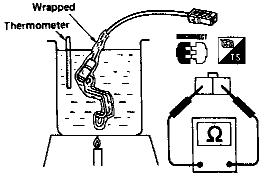 Check resistance between two terminals while changing temperature as shown.