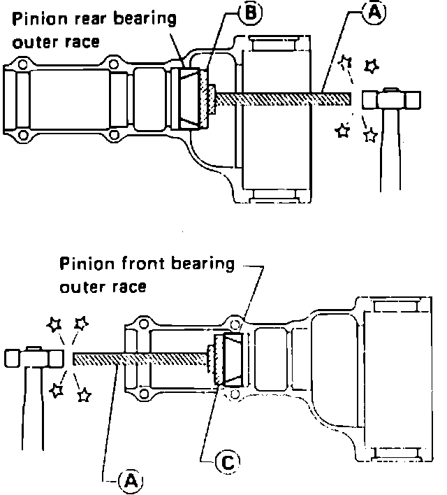 e. Never add or remove a different number of shims for each side as it will change ring gear to drive pinion backlash.