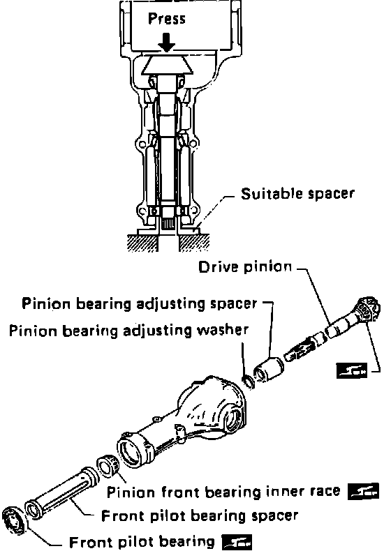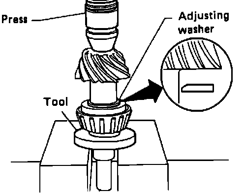2. Refer to Adjustments and select proper pinion bearing adjusting washer and drive pinion bearing spacer.