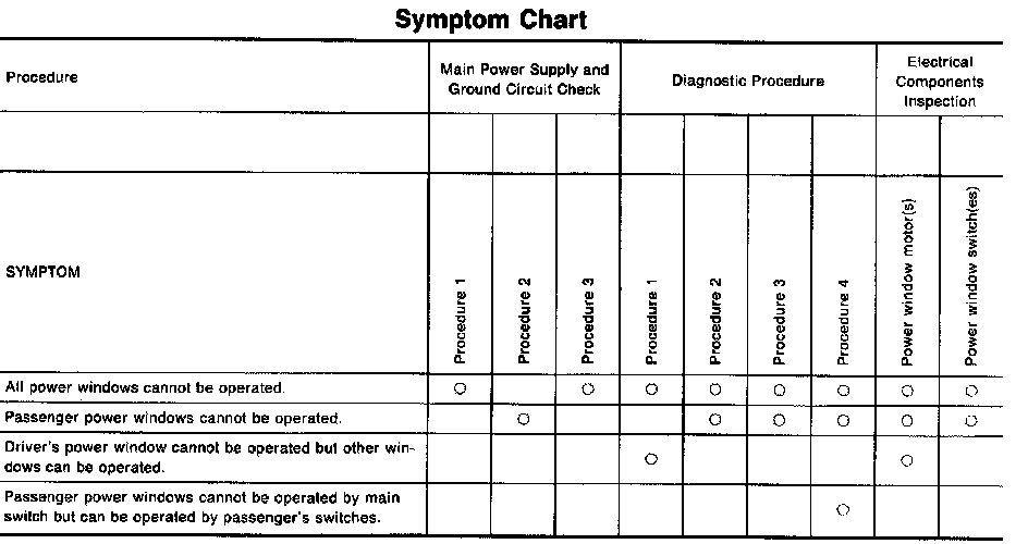 Since left and right component parts are basically the same, harness layout and methods for electrical components inspection are shown for one side only. Although methods for checking component parts on both sides are described in the flow chart, making it easier to troubleshoot, apply checking procedures to either side that have malfunction during trouble diagnoses.