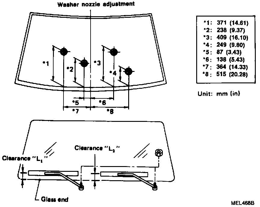4. Ensure that wiper blades stop within clearance "L1" & "L2".