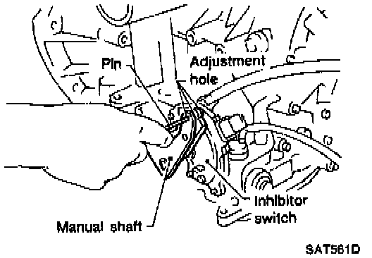 6. Remove pin from adjustment holes after adjusting inhibitor switch.