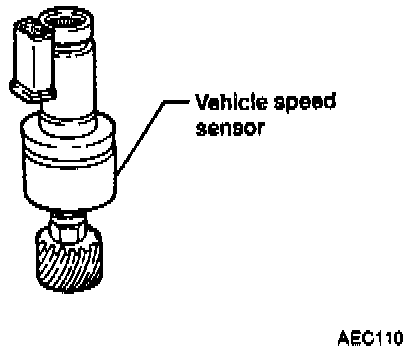 The vehicle speed sensor, installed in the transaxle, contains a pulse generator which provides a vehicle speed signal to the speedometer. The speedometer then sends a signal to the ECM.