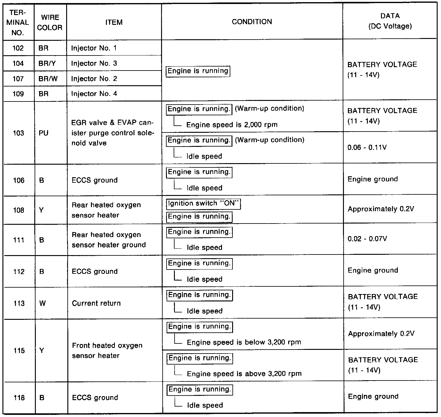Specification data are reference values and are measured between each terminal and (43) (ECCS ground).