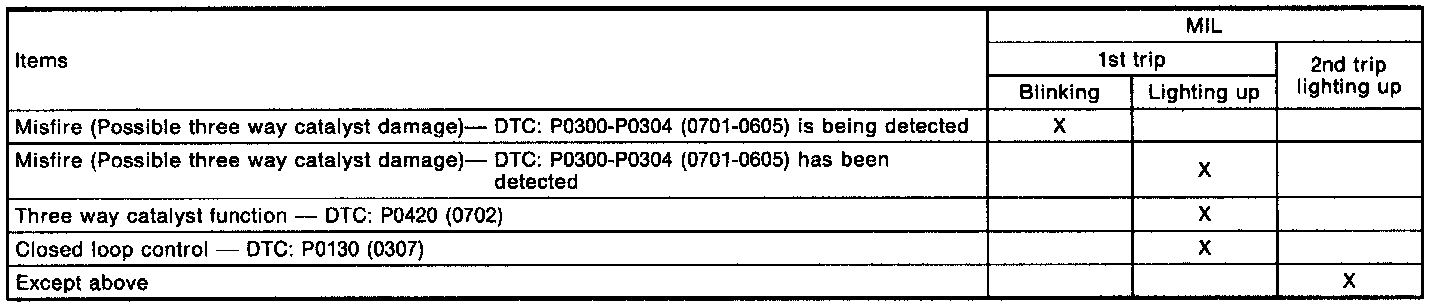 <2nd trip> - Specific on-board diagnostic items will light up or blink the MIL even in the 1st trip as below.
