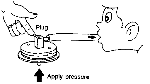 2) Vacuum from the other port and check for leakage while applying a pressure above 0.981 kPa (100 mmH2O, 3.94 inH2O) from under EGRC-BPT valve.