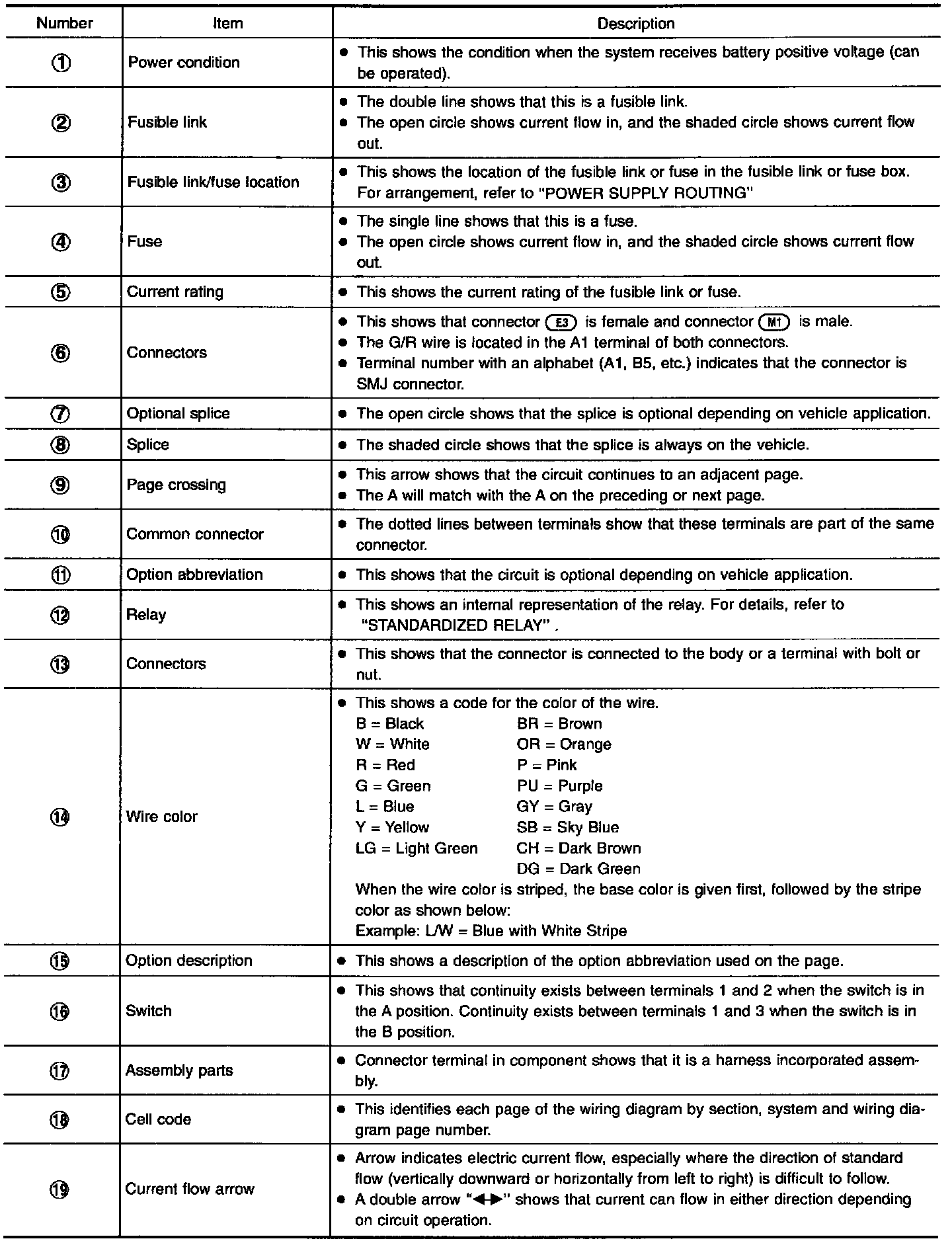 WIRING DIAGRAM LEGEND