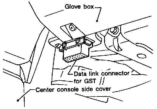 2. Connect "GST" to data link connector for GST. (Data link connector for GST is located under LH dash panel near the fuse box cover.)