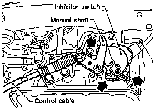 6. Remove pin from adjustment holes after adjusting inhibitor switch.