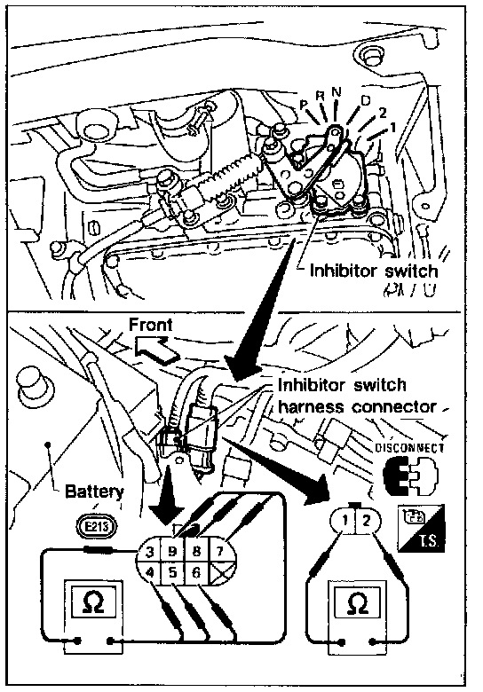 6. If NG on step 4, replace inhibitor switch.