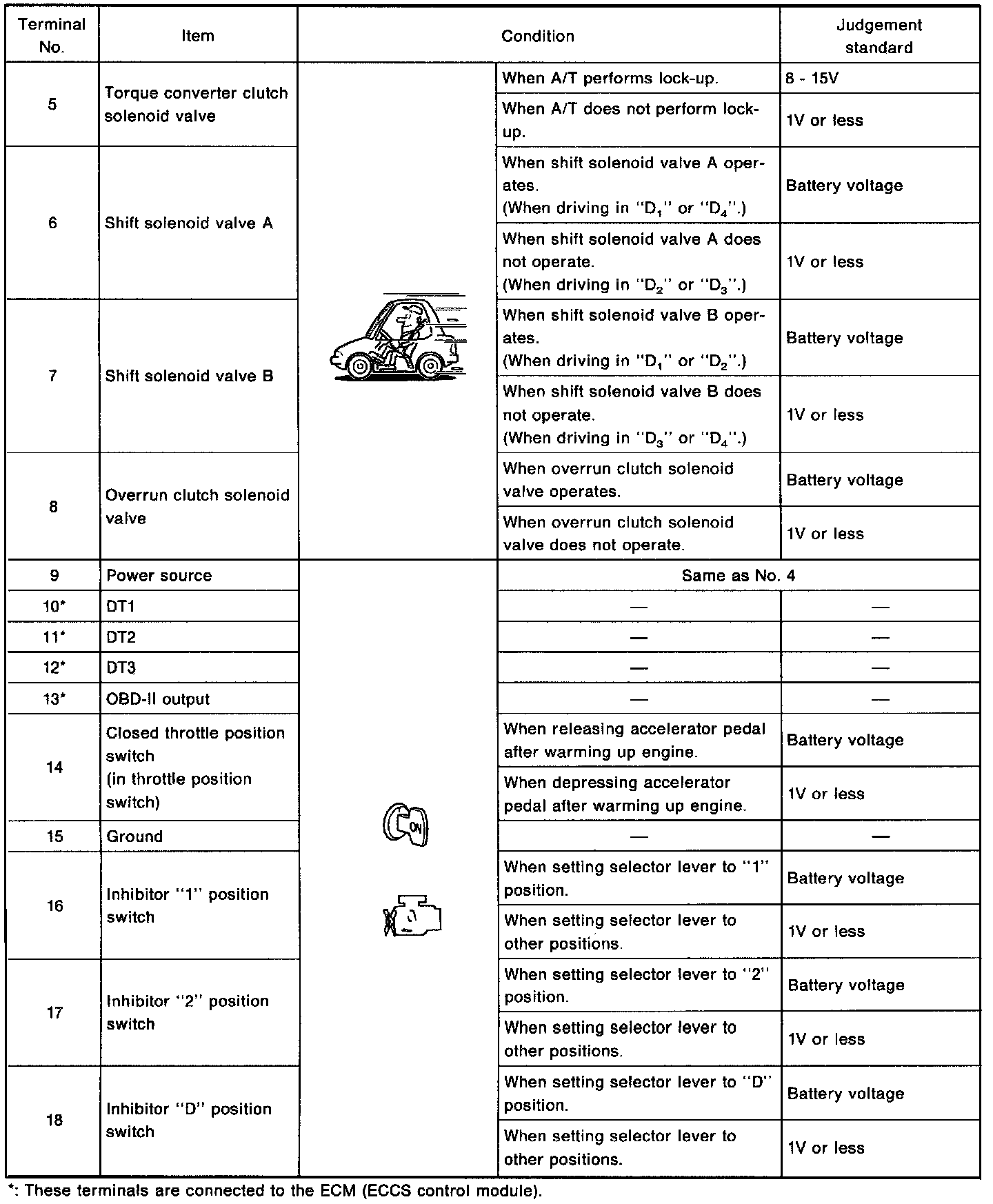 A/T Control Unit Inspection Table (Part 4 Of 4):