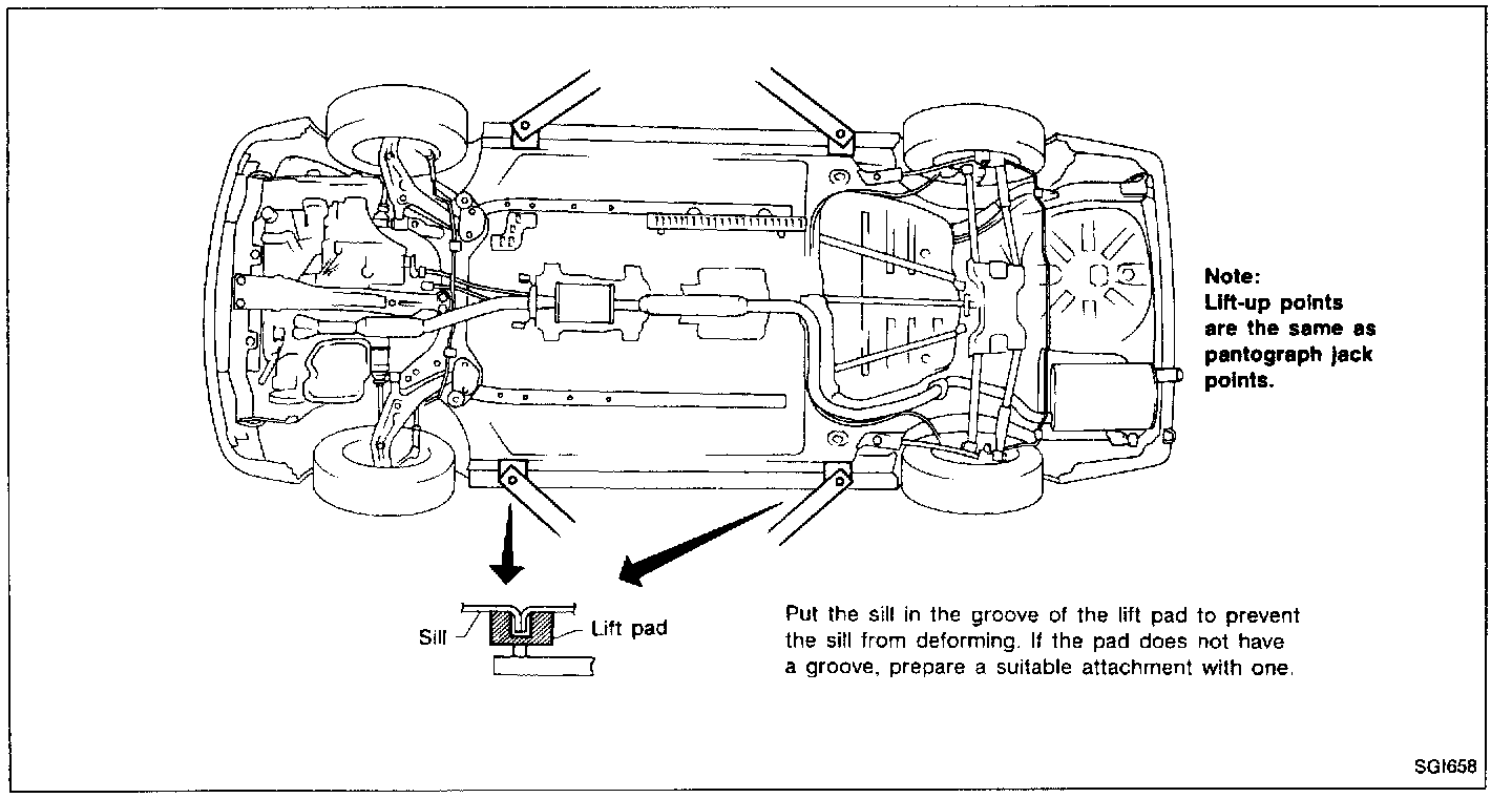 WARNING: When lifting the vehicle, open the lift arms as wide as possible and ensure that the front and rear of the vehicle are well balanced.