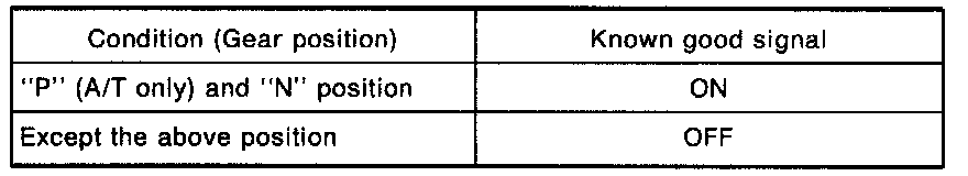 3) Check the "P/N POSI SW" signal under the following conditions.